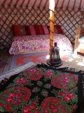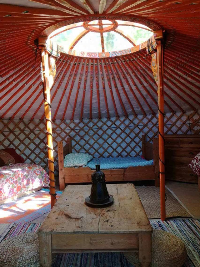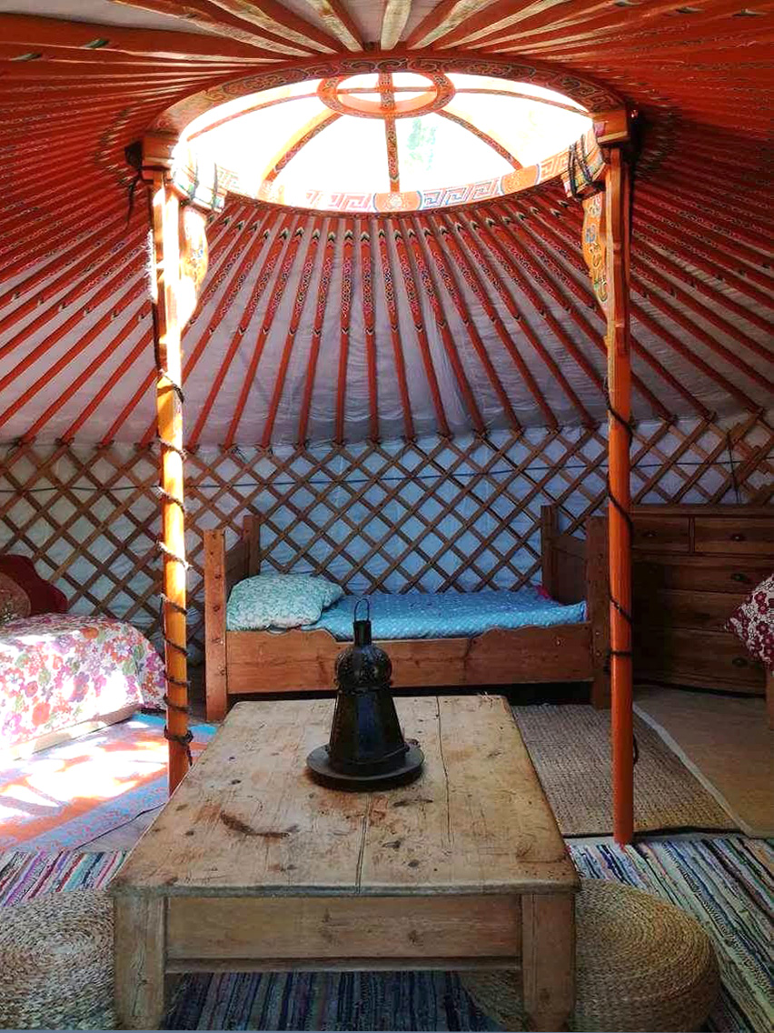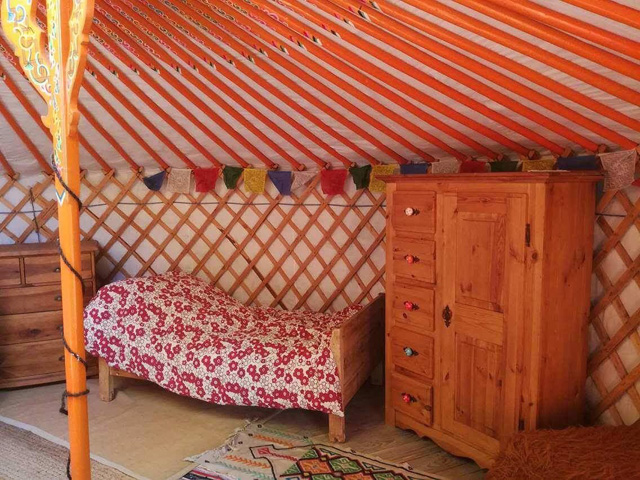 Cette yourte typique de l'habitat traditionnel des populations nomades de Mongolie vous propose une décoration intérieure colorée et chaleureuse pour un moment d'évasion ressourçant dans un cadre cosy.